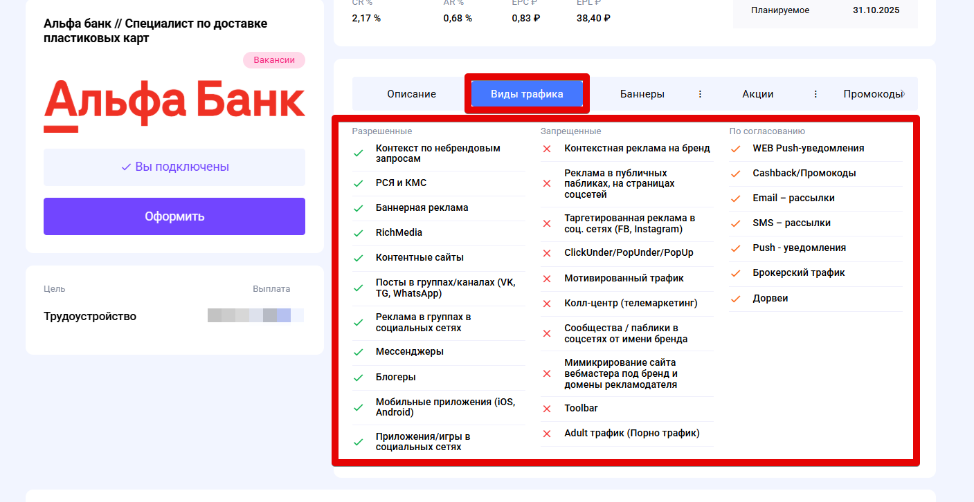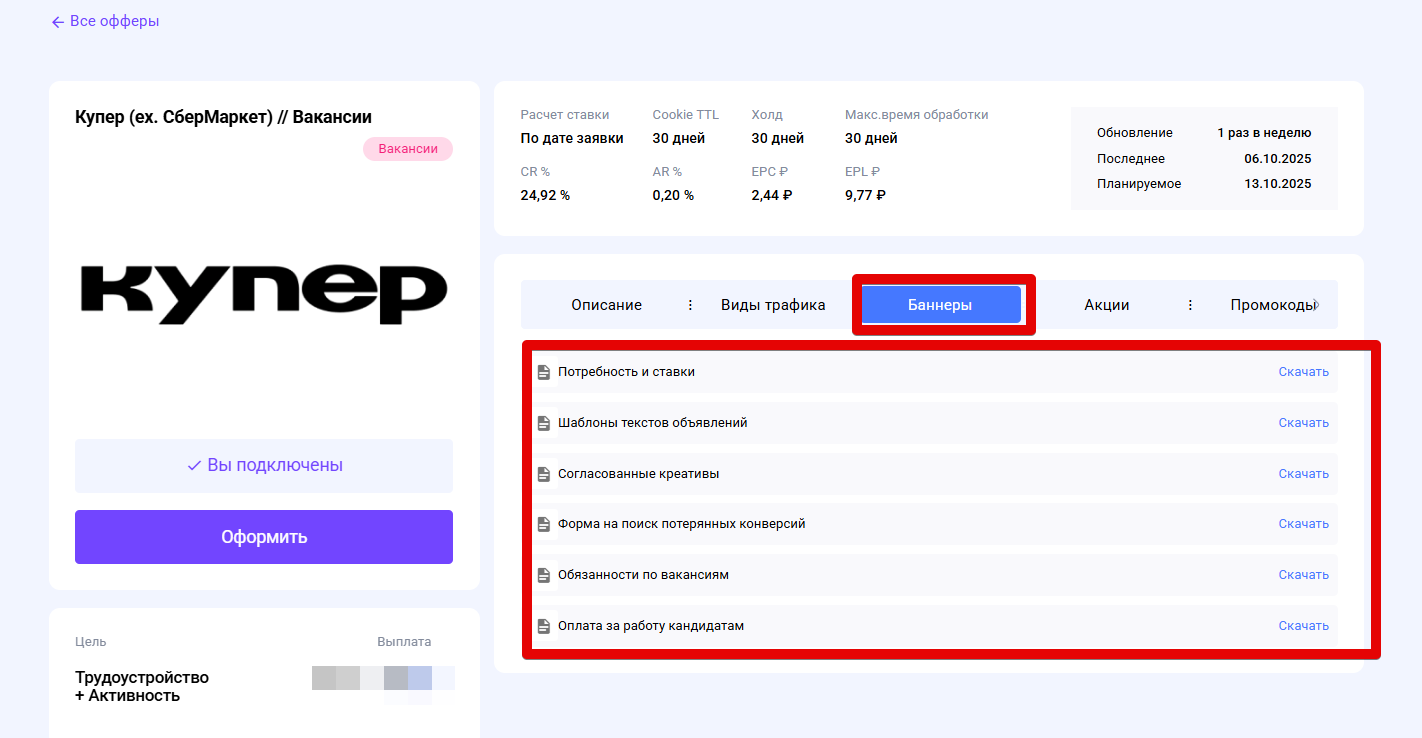 Мы предоставляем на платформе Пампаду всё необходимое для комфортной и эффективной работы — от рекламных материалов и текстов вакансий до информации о разрешённом и запрещённом трафике.