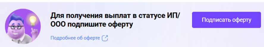 Для того, чтобы получать вознаграждение как юридическое лицо, вам необходимо подписать договор на оказание услуг - Оферту.