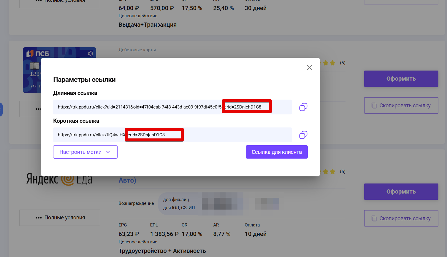 На рынке CPA сложилась ситуация, при которой все рекламодатели переложили ответственность за маркировку на рекламораспространителей — то есть на нас и на вас. В связи с этим мы модернизировали платформу: теперь каждая рекламная ссылка на Пампаду содержит уникальный токен ERID, соответствующий требованиям закона.