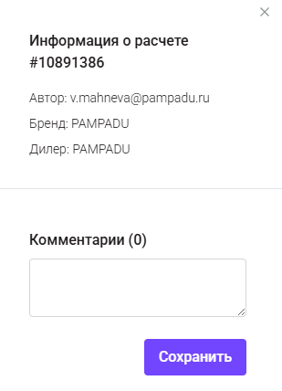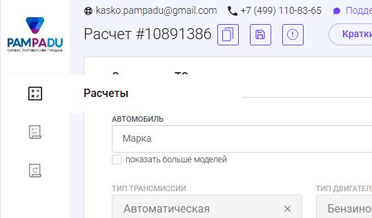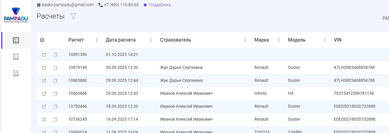 ⚠️ Внимание! В ЛК Пампаду также сохраняется карточка расчёта. Однако переход из неё возможен только в первоначальную котировку по кнопке «Открыть».