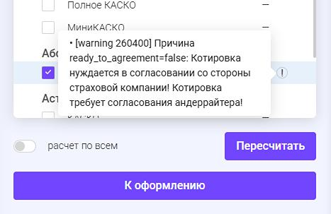 У каждой страховой компании есть индивидуальные опции и условия урегулирования. В этом блоке вы можете настроить их отдельно для каждой СК. Переключаться между страховыми можно, выбирая их под заголовком.