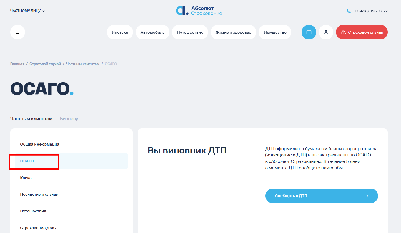 Более подробную информацию о том, как действовать при ДТП, вы можете найти на сайте страховой компании по ссылке: https://www.absolutins.ru/strahovoj-sluchaj/fizicheskie-lica/osago/