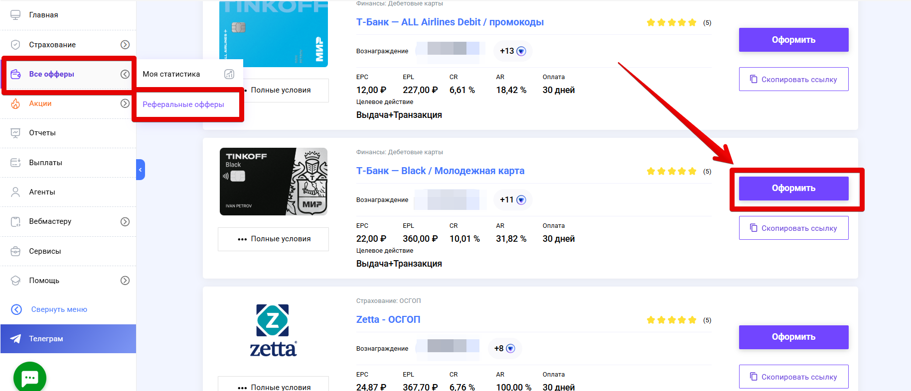 В личном кабинете Пампаду вы можете самостоятельно оформлять финансовые продукты или отправлять ссылки своим клиентам и зарабатывать. Чтобы оформить финансовый продукт, необходимо нажать на кнопку «Оформить» в каталоге.