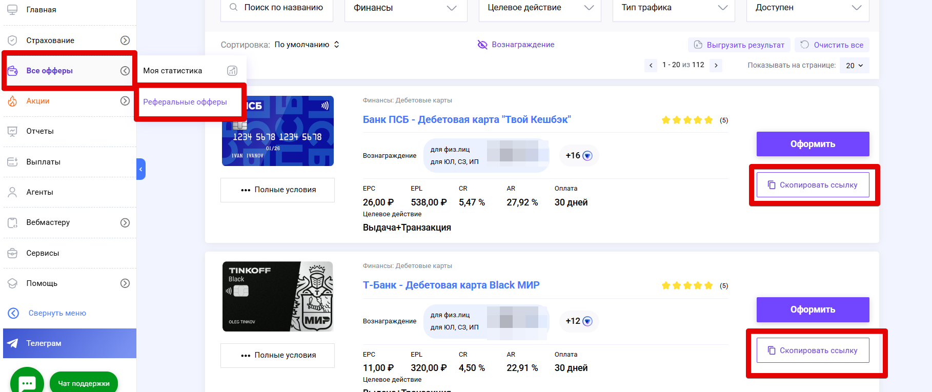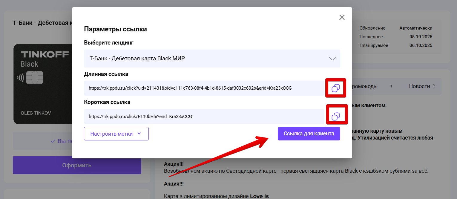 В этой статье разберём, какие ссылки на финансовые продукты можно использовать для работы с клиентами, как правильно их скопировать и где именно их найти.